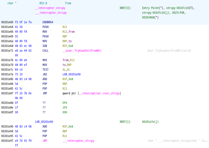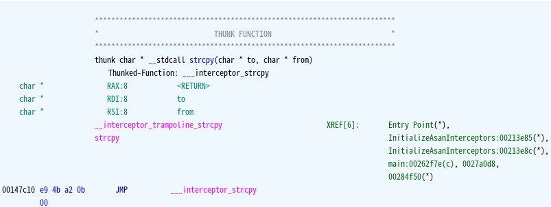 interceptor は、割り込み対象のオリジナル関数を ASan の関数に置換します。